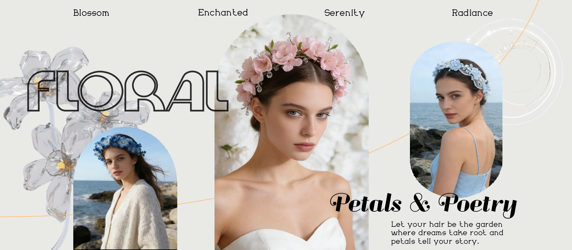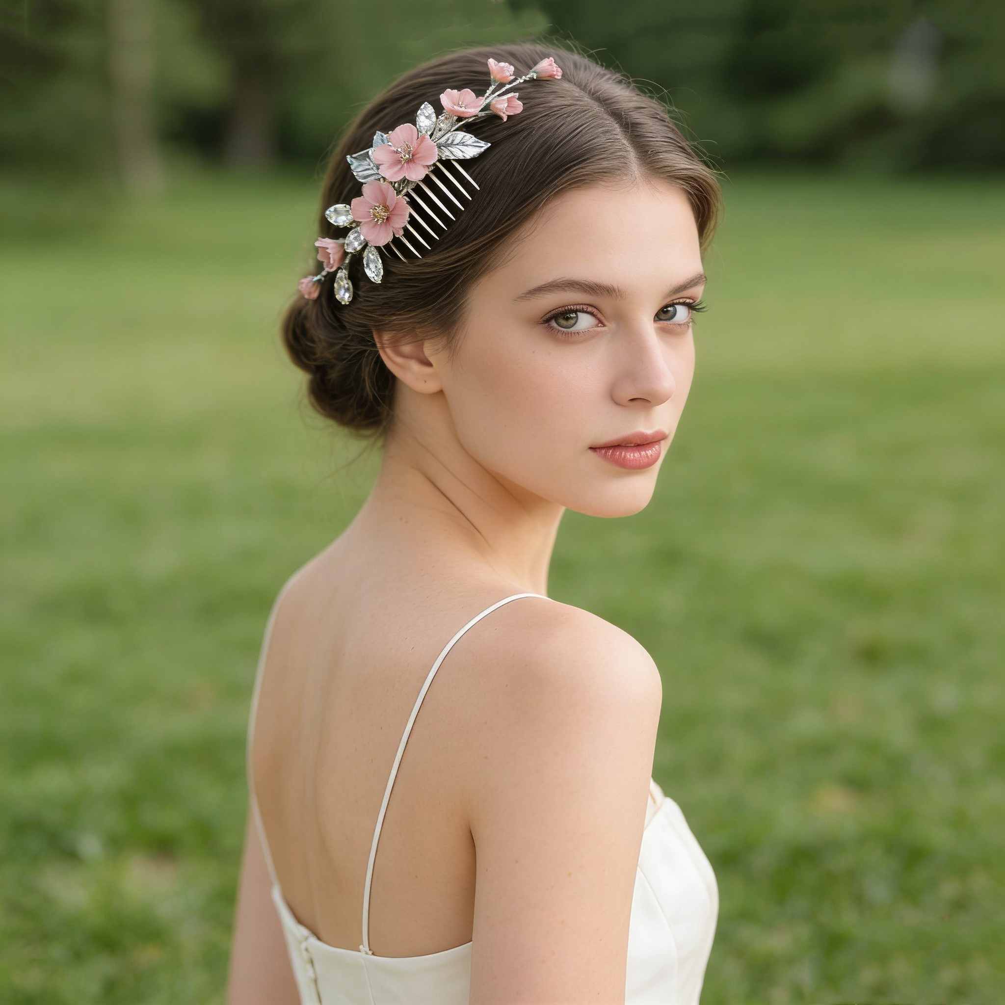 Shop nowSoft pink cherry blossoms, silver leaves, and clear crystals create a delicate spring-inspired look.